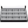 - Bandeja com 12 nichos com medidas aproximadas de 6 x 5 cm