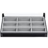 - Bandeja mista com 9 nichos 3,5 x 5 cm + espuma com 40 cortes em H para anéis